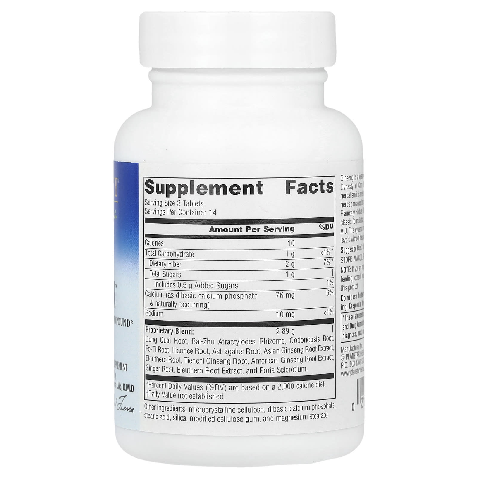 O ginseng é um tonificador lendário sobre o qual se escreveu pela primeira vez na Dynasty Sui da China (580-601 d.C.). Na fitoterapia tradicional chinesa, raramente é usado sozinho. Em vez disso, é combinado com ervas que contribuem para aumentar suas ações tonificantes. GINSENG REVITALIZER™ da Planetary Herbals é baseado em uma fórmula clássica que tem sido usada continuamente desde 1078 d.C. Essa combinação dinâmica foi projetada para manter níveis de energia sem o uso de estimulantes.