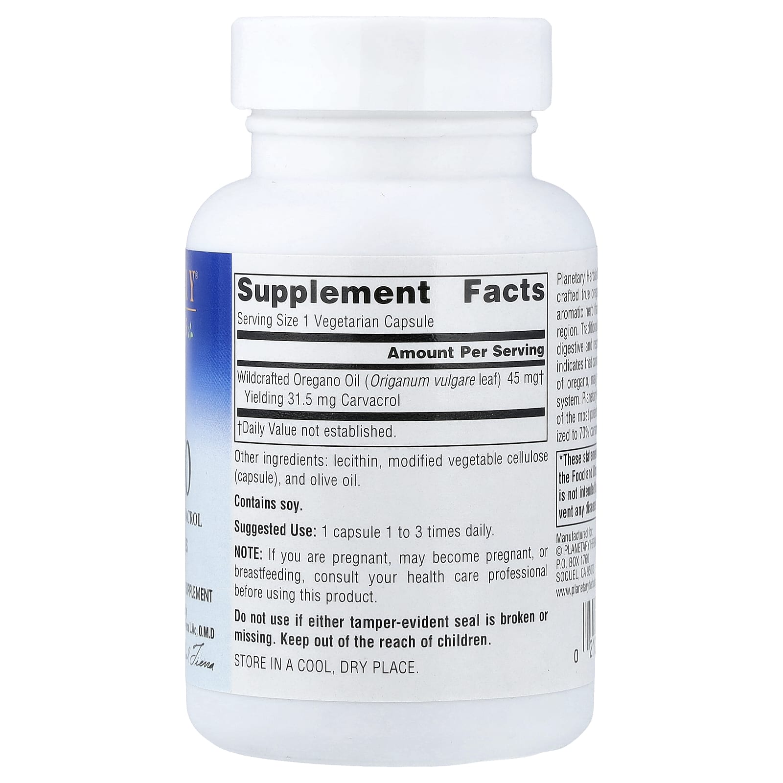 Planetary Herbals O Óleo de Orégano é feito de orégano verdadeiro de origem selvagem (Origanum vulgare), uma erva aromática nativa da região do Mediterrâneo. Tradicionalmente, o orégano era usado para promover a saúde digestiva e respiratória. Pesquisas in vitro indicam que o carvacrol, um constituinte ativo do óleo de orégano, pode auxiliar o sistema imunológico. O Óleo de Orégano da Planetary Herbals é um dos mais potentes do mercado e é padronizado para 70% de carvacrol.