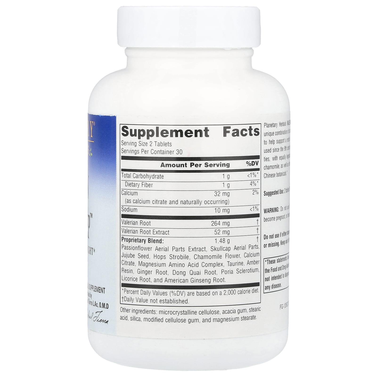 Valerian Easy Sleep™ da Planetary Herbals é uma combinação exclusiva de vegetais usados há séculos para contribuir para uma noite repousante. Ele une a valeriana, usada desde o século IX por suas propriedades calmantes, com lúpulo e camomila calmantes também lendários, além de outras plantas europeias e chinesas selecionadas.