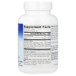 Verbasco Lung Complex™ é um composto importante de verbasco e casca de cereja selvagem. Combina os efeitos calmantes do verbasco e do alcaçuz, as propriedades tonificantes do Ophiopogon e do Platycodon e as qualidades picantes da erva-campeira, do gengibre e da canela.