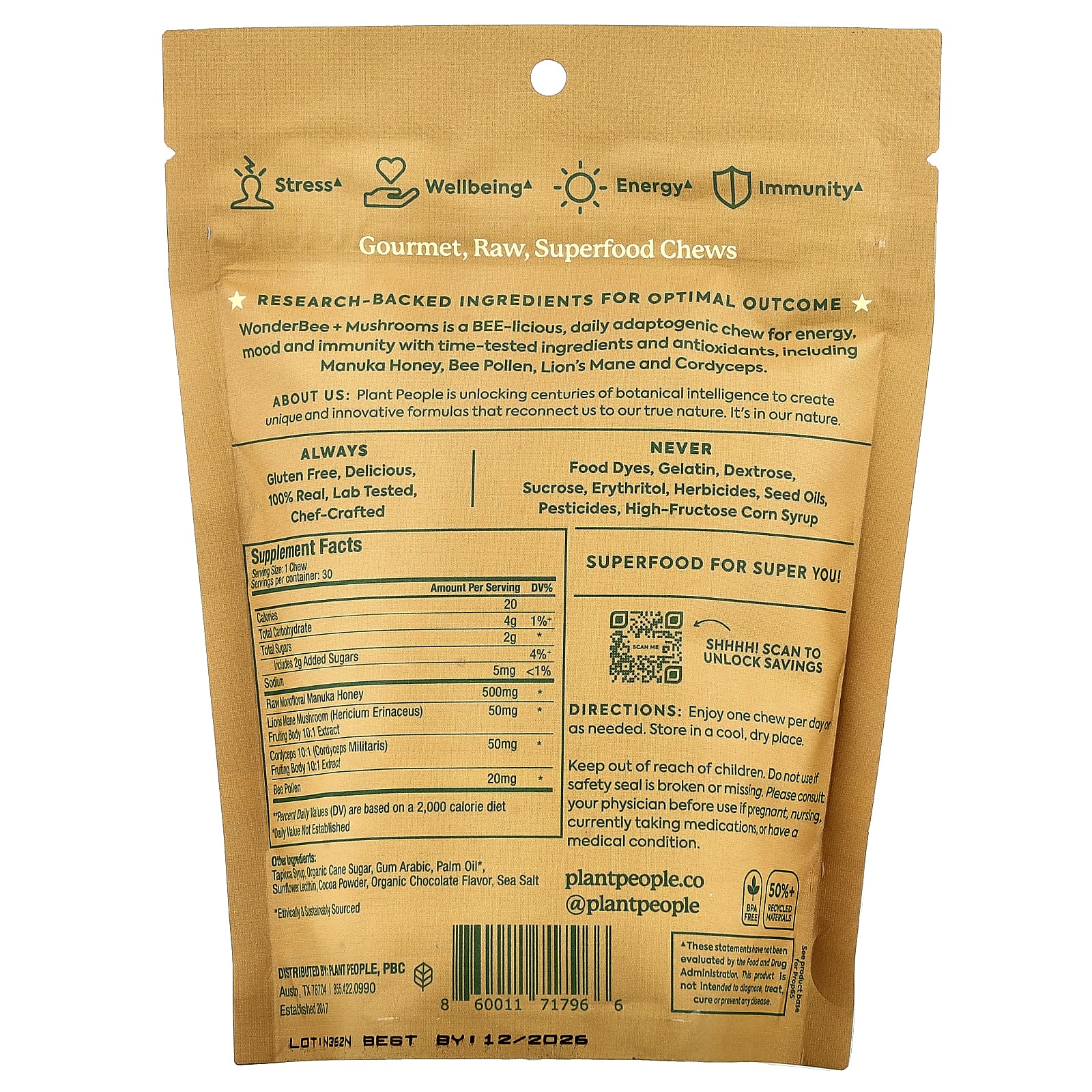 Plant People Cápsulas Mastigáveis de Superalimentos e Cogumelos WonderBee® Chocolate 30 Cápsulas Mastigáveis – Plant People Alimentos Mel e adoçantes Mel Mel de manuka.