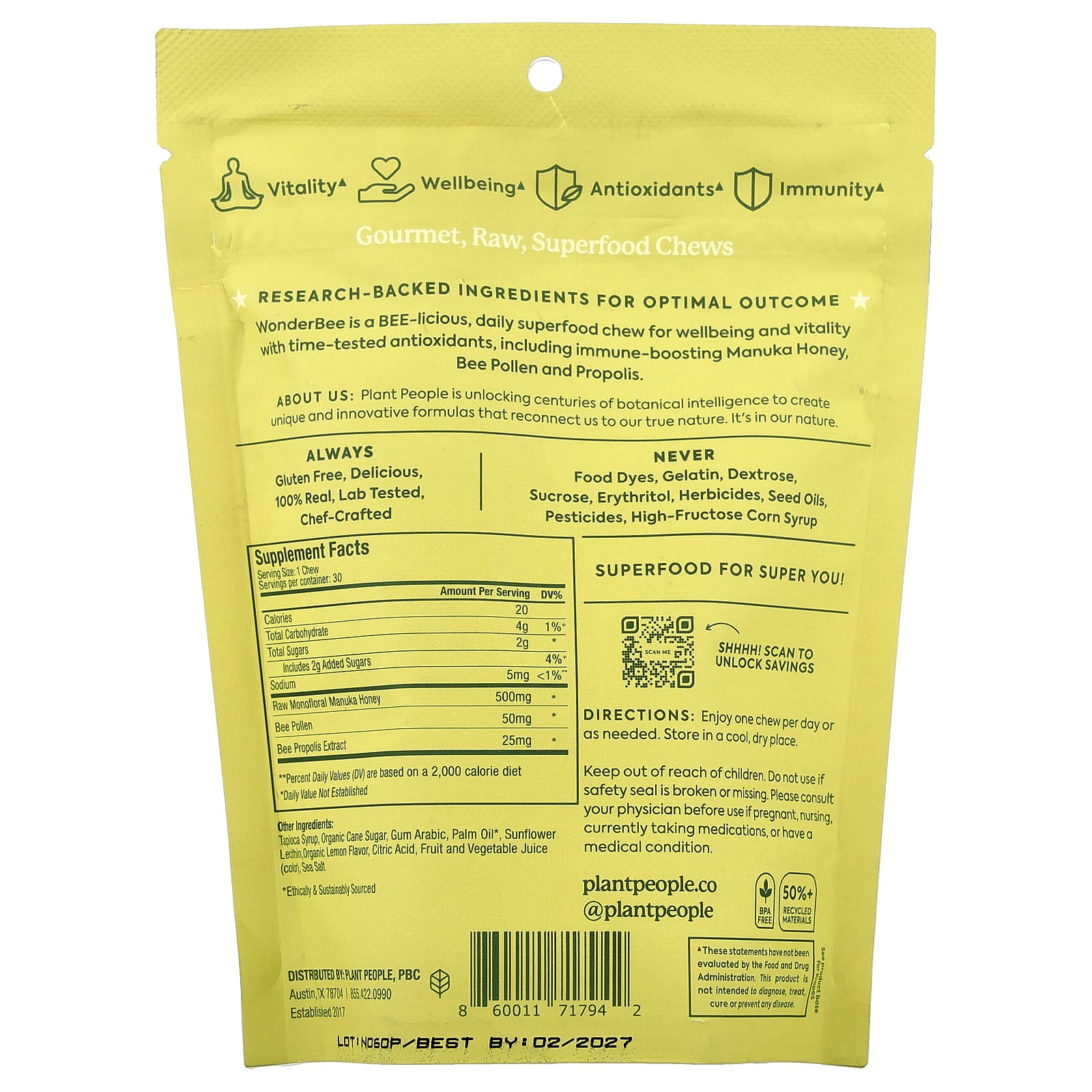 Plant People WonderBee® Superalimentos de Cápsulas Mastigáveis de Mel Limão MGO 400+ 30 Cápsulas Mastigáveis