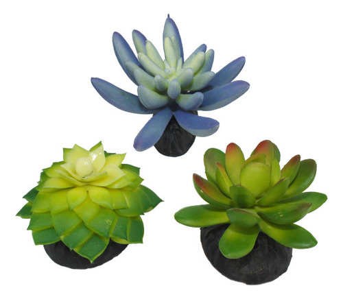 Este pacote de 3 plantas do deserto vem em tons variados de azul e verde. As suculentas realistas têm uma base pesada que torna mais difícil tombar. 3 pacotes de plantas do deserto. Suculentas realistas. Base ponderada. Cores variadas.