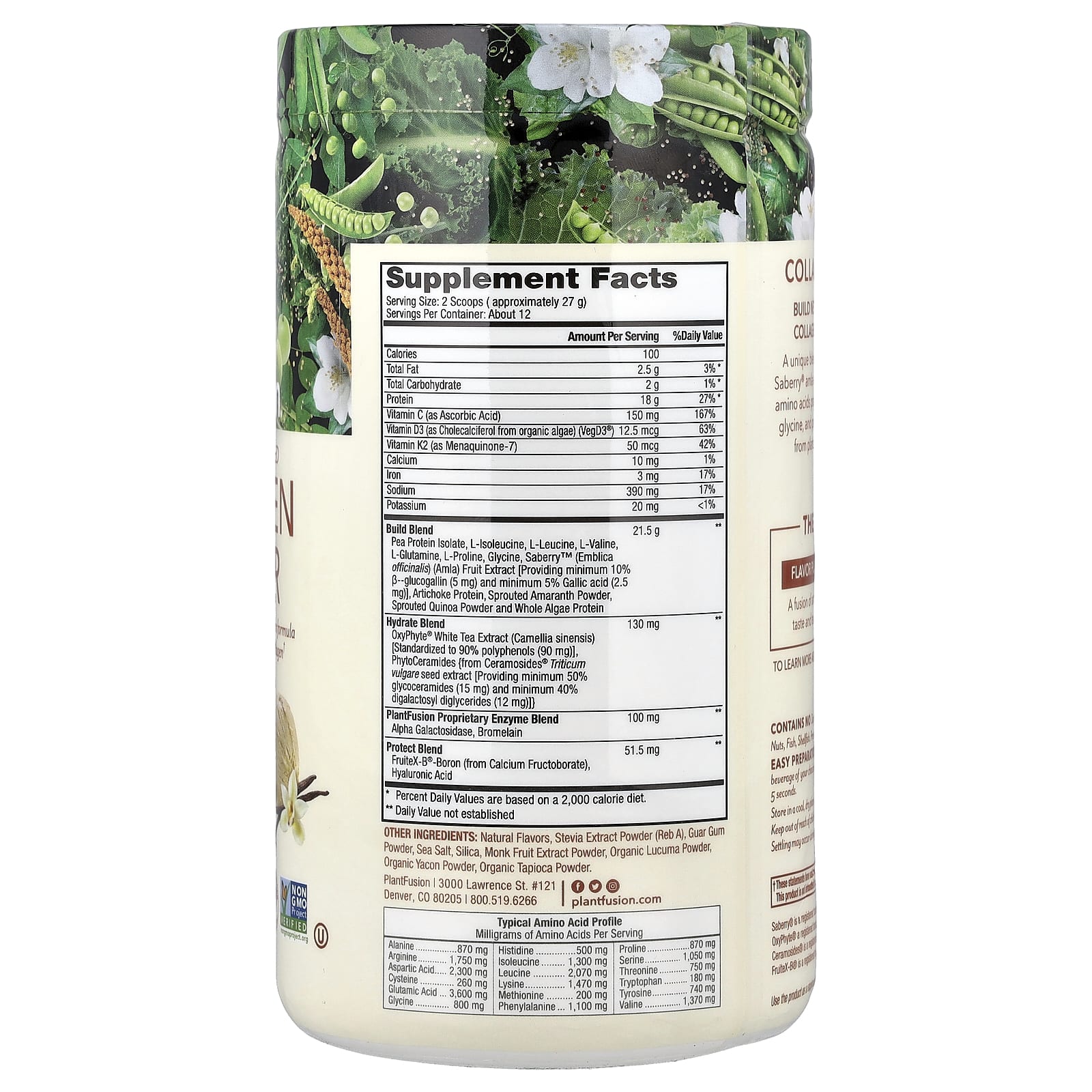 PlantFusion Construtor Completo de Colágeno à Base de Plantas Fava de Baunilha Cremosa 324 g (1143 oz) – PlantFusion Suplementos Ossos, Articulações e Cartilagem Colágeno, Suplementos.