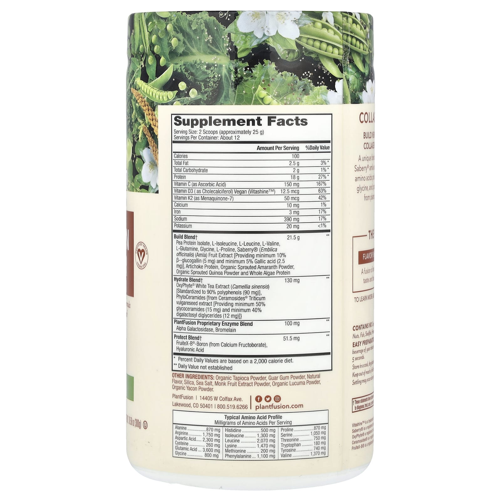 PlantFusion Construtor Completo de Colágeno à Base de Plantas Natural 300 g (1058 oz) – PlantFusion Suplementos Ossos, Articulações e Cartilagem Colágeno, Suplementos.