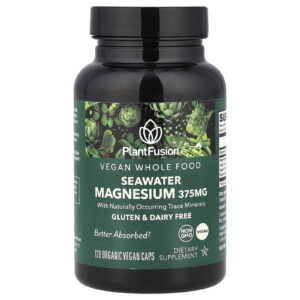 PlantFusion Magnésio da Água do Mar 120 Cápsulas Veganas Orgânicas – PlantFusion Suplementos Minerais Magnésio.