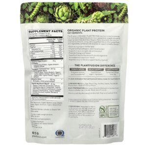 A Proteína à Base de Plantas Orgânicas da PlantFusion foi formulada para fornecer a proteína mais facilmente digerível de fontes orgânicas excepcionais de proteína vegana misturada de Ervilhas Orgânicas, Amaranto, Quinoa e cogumelos variados, junto com uma mistura de superalimentos de frutas e vegetais fermentados, combinados com enzimas para contribuir para uma estilo de vida.