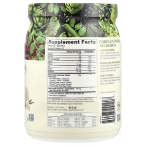 Reforça a Energia – Rica em proteínas de alta densidade à base de plantas, incluindo ervilhas, alcachofras, algas e superalimentos germinados.