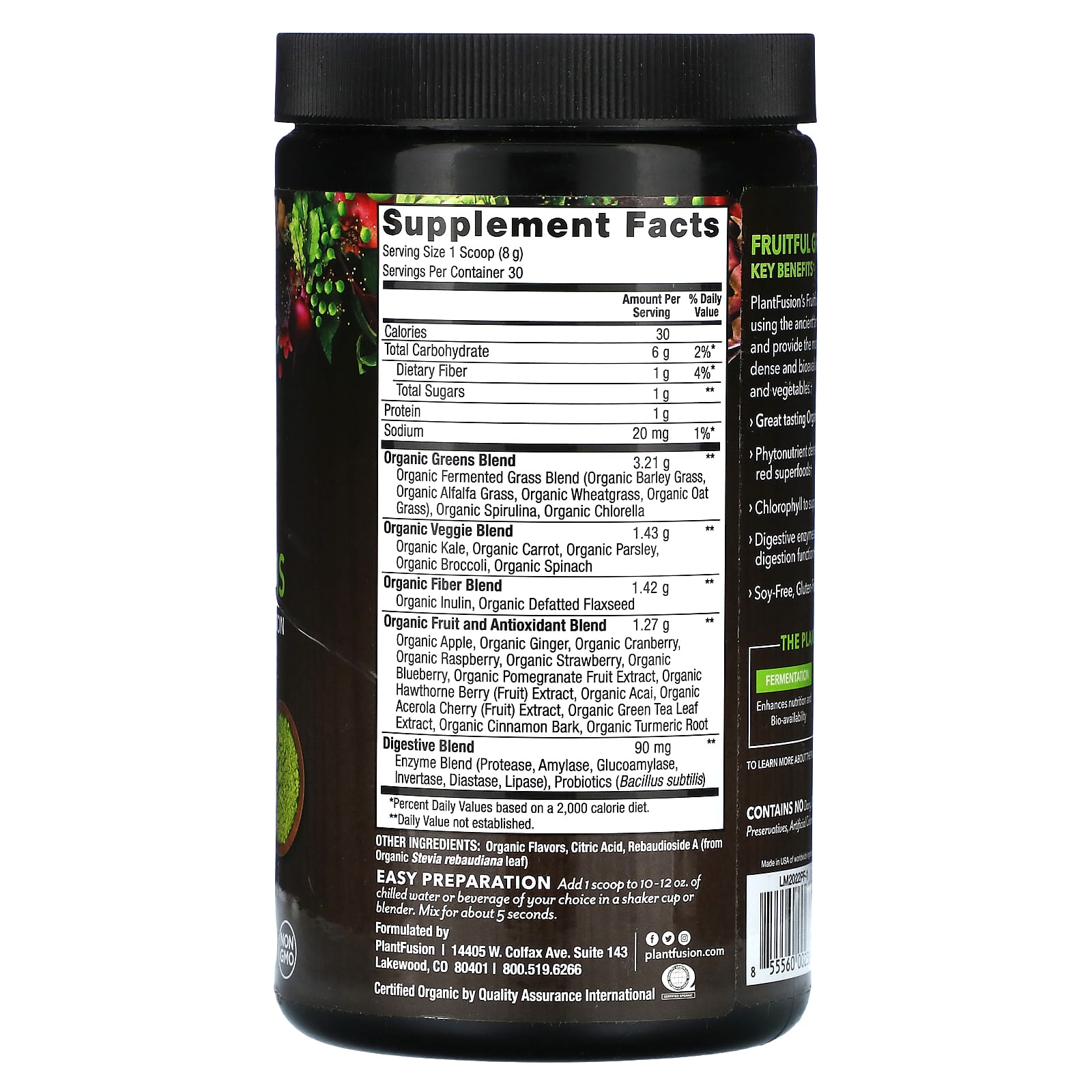 PlantFusion Verduras Frutíferas Orgânicas 240 g (846 oz) – PlantFusion Suplementos Superalimentos Misturas de Verduras e Superalimentos.