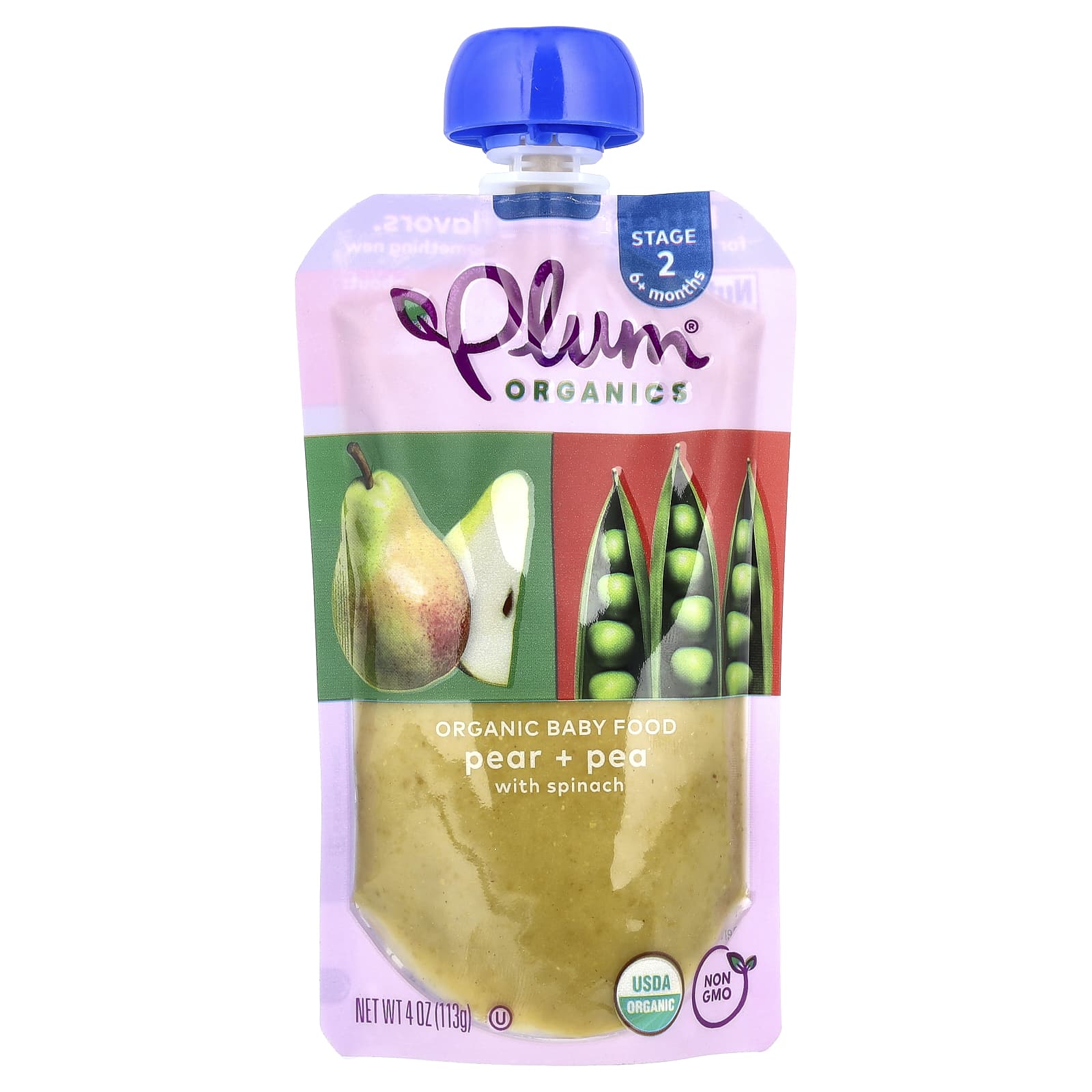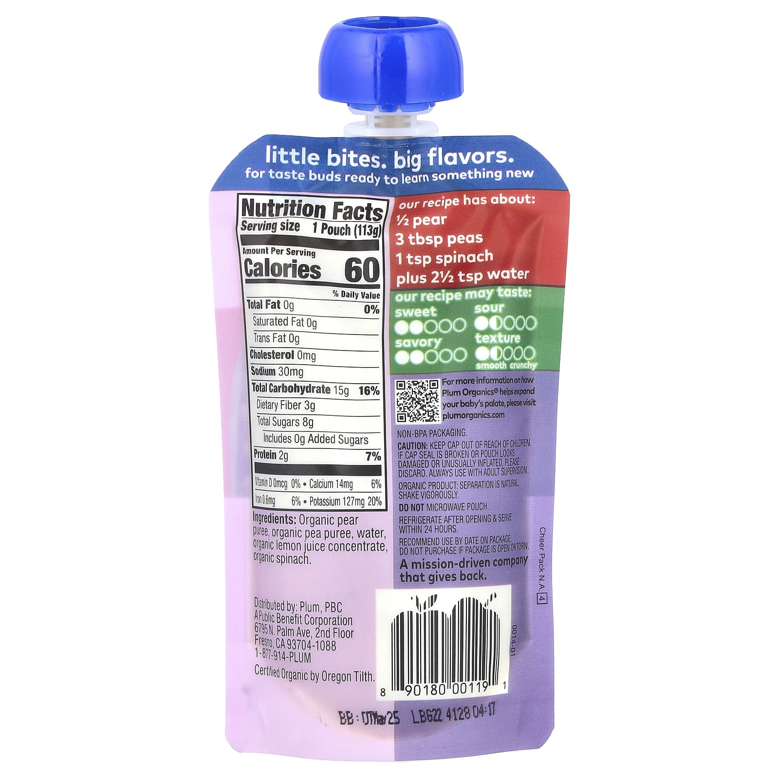 Plum Organics Alimento Orgânico para Bebês Acima de 6 Meses Pera + Ervilha com Espinafre 113 g (4 oz) – Plum Organics Bebês e Crianças Alimentação Saquinhos, Purês e Refeições.