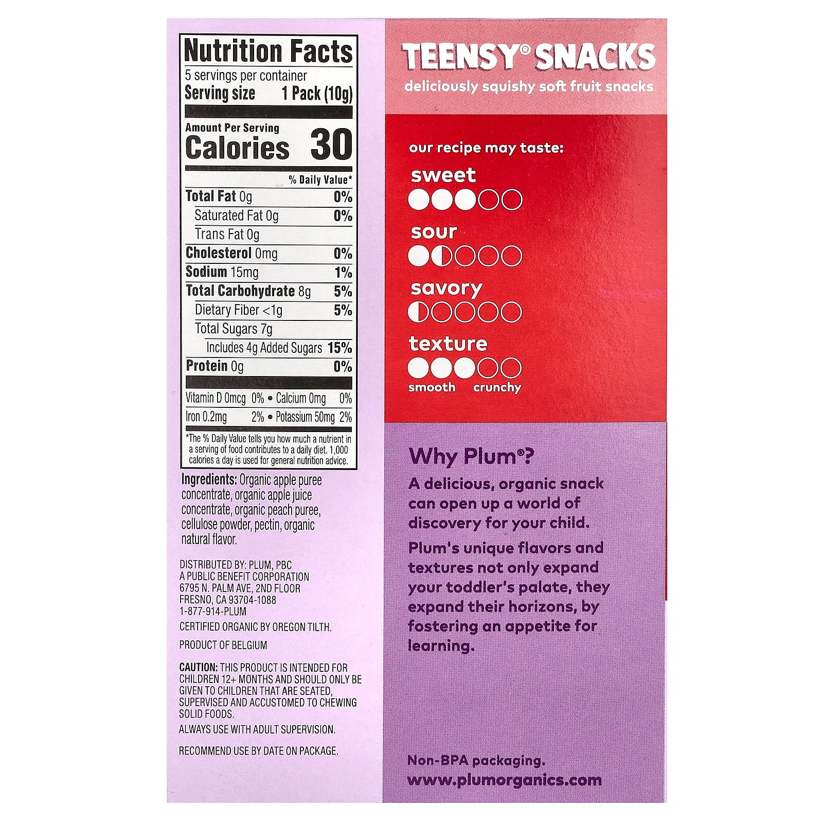Plum Organics Lanche da Teensy Soft Fruits Acima de 12 Meses Pêssego 5 Pacotes 10 g (035 oz) Cada – Plum Organics Bebês e Crianças Alimentação Lanches para Bebês e Crianças.