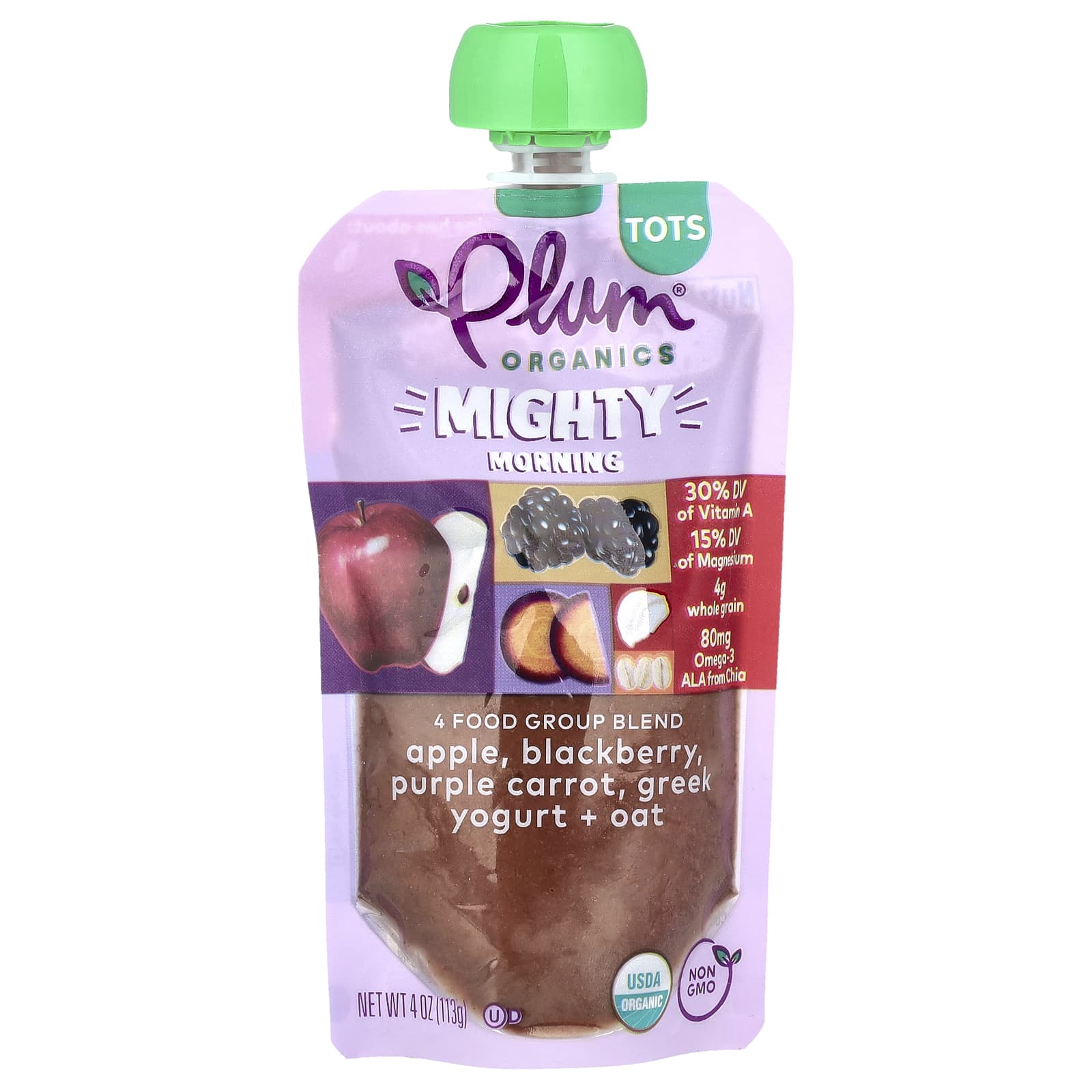 Plum Organics Mighty Morning Mistura de 4 Grupos de Alimentos Salgadinho Maçã Amora Cenoura Roxa Iogurte Grego Aveia 113 g (4 oz) – Plum Organics Bebês e Crianças Alimentação Saquinhos, Purês e Refeições.
