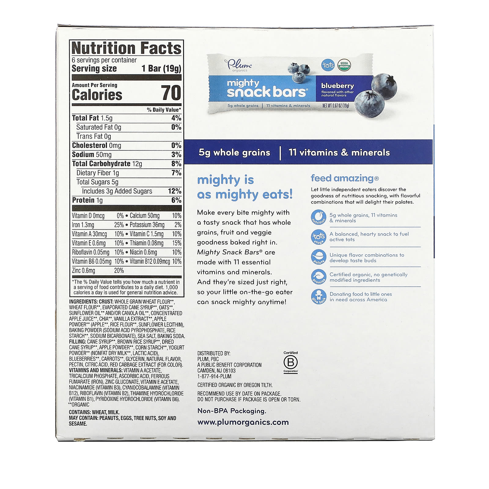 Plum Organics Poderosas Barras de Lanche Bolinhos Mirtilo 6 Barras 19 g (067 oz) Cada – Plum Organics Bebês e Crianças Alimentação Lanches para Bebês e Crianças.