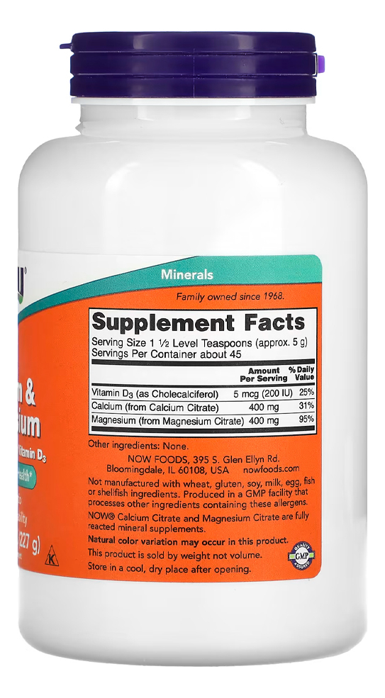 Pó Cálcio e Magnésio Now Foods 227g Importado
