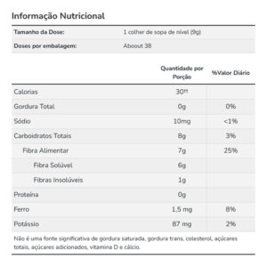 5. Composição: Produzido com ingredientes orgânicos e naturais, é uma fonte rica de fibras solúveis e insolúveis, mantendo suas propriedades nutritivas intactas. Validade longa