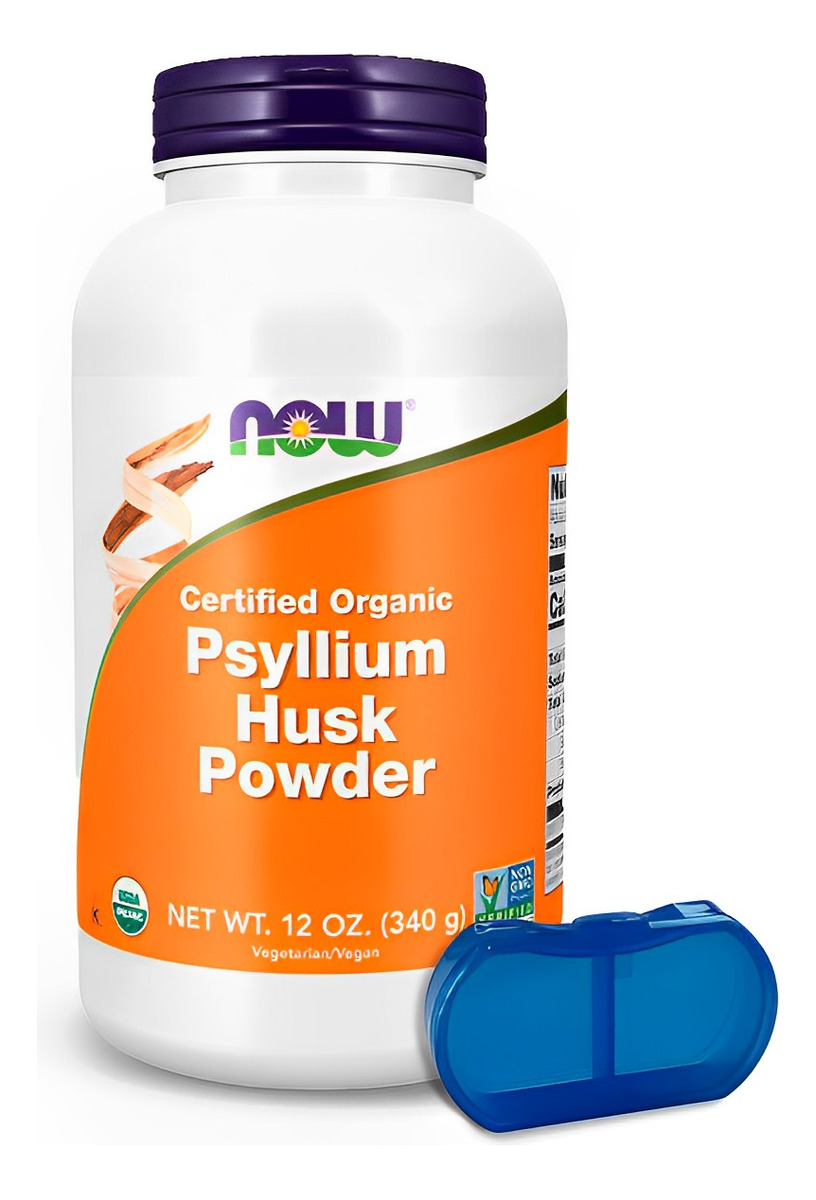 Pó de casca de psyllium Now Foods 340g Orgânico Importado + Porta Cápsulas