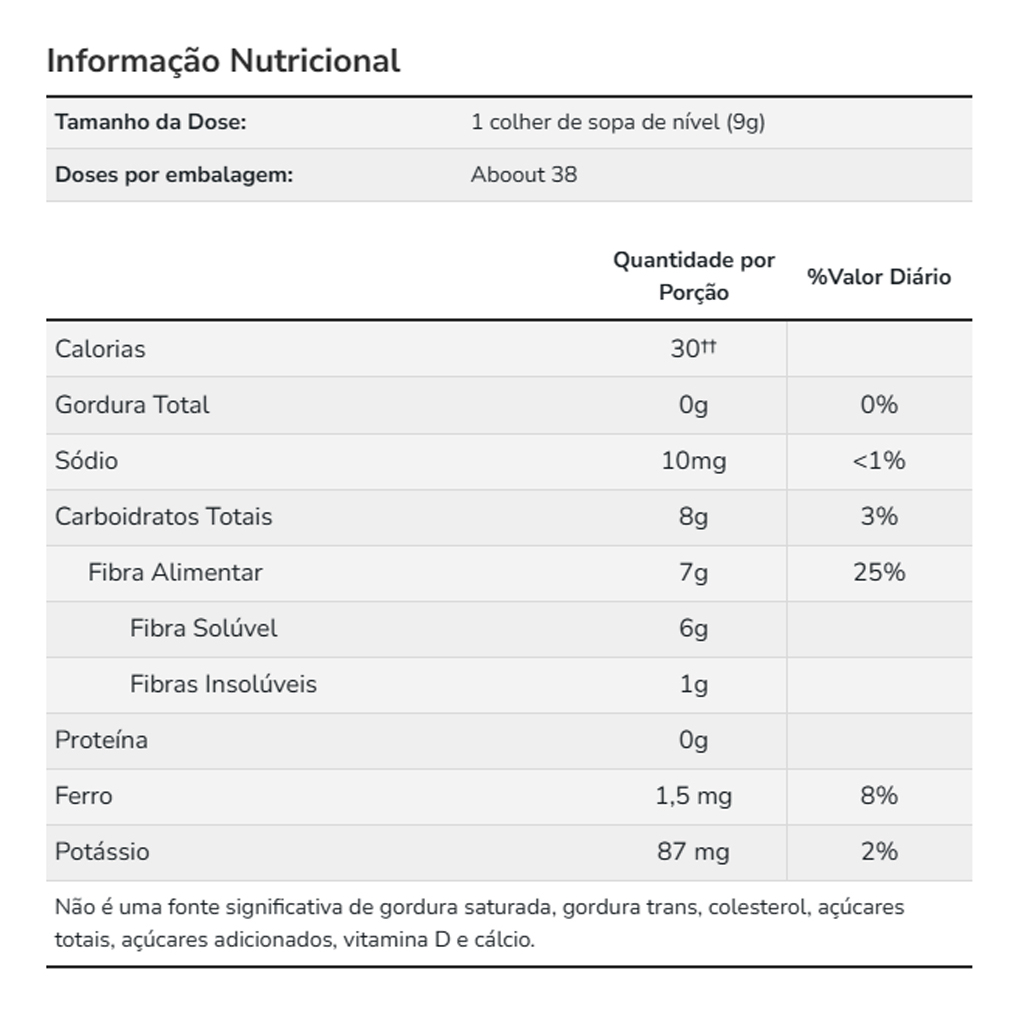 Suporte Principal: Ajuda na manutenção de uma digestão equilibrada devido ao alto teor de fibras, contribuindo para a sensação de bem-estar geral.