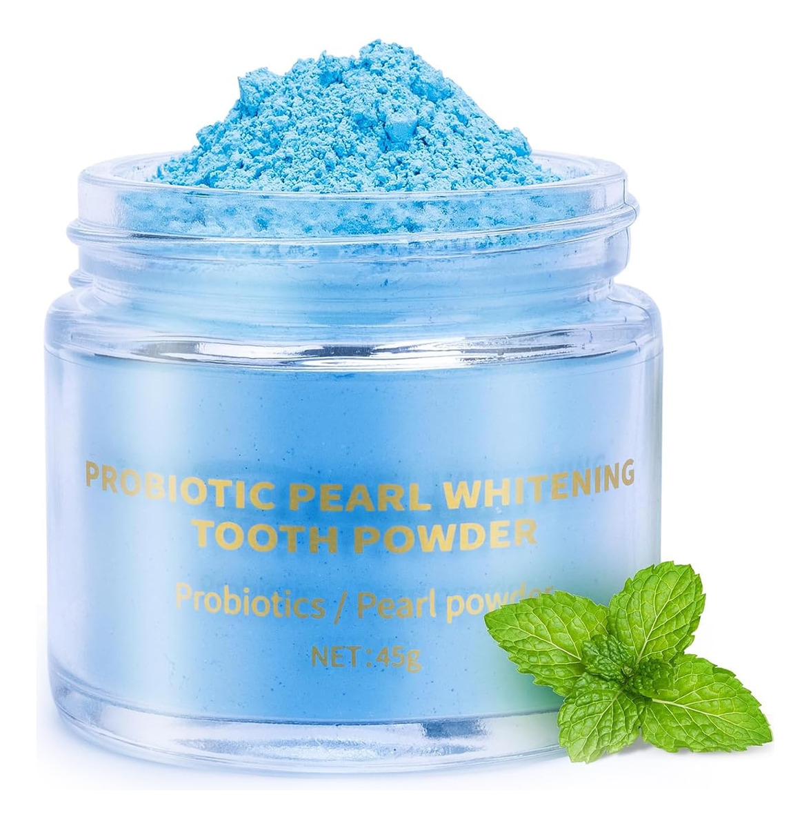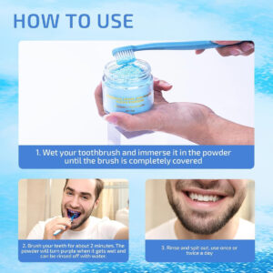 Pó clareador de dentes, pó clareador probiótico em pó, creme dental em pó clareador de dentes em pó para clareamento e remoção de manchas, pó clareador com sabor de menta – clareamento eficaz com ingredientes naturais: obtenha um sorriso mais brilhante com este pó clareador de dentes. Formulado para remover suavemente as manchas e a descoloração causadas pelo café, chá ou fumo, ele restaura a brancura natural dos dentes sem produtos químicos agressivos – Saúde bucal movida a probióticos: infundido com probióticos benéficos, este pó dental apoia um microbioma oral equilibrado, reduzindo o acúmulo de placa bacteriana, refrescando o hálito e promovendo gengivas mais saudáveis a cada uso – Fórmula suave e segura para o esmalte: projetado pensando na sensibilidade, o pó clareador sem flúor proporciona uma limpeza eficaz sem danificar o esmalte ou causar desconforto, tornando-o ideal para uso diário uso – Sabor refrescante de menta: desfrute de uma explosão de sabor natural de menta que deixa sua boca fresca e revigorada o dia todo. Perfeito para manter um hálito fresco e duradouro após cada escovação – Simples e conveniente de usar: basta mergulhar a escova de dentes úmida no pó, escovar normalmente por 2-3 minutos e enxaguar. Compacto e ideal para viagens, este pó clareador é essencial para sua rotina de higiene bucal em casa ou em qualquer lugar