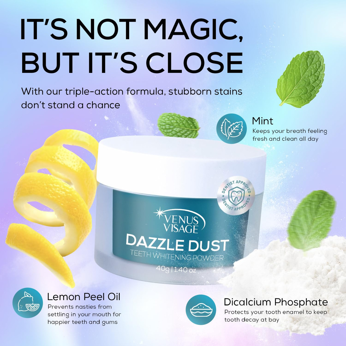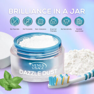 hidroxiapatita em pó clareador dentário argila de bentonita roxa para reverter a cárie dentária – Experimente The Dazzle: amantes de café e chá, conheça seu salvador. O pó branqueador dentário Venus Visage combate com segurança, mas fortemente, as manchas superficiais e o amarelecimento causados pelo vinho, café, chá ou fumo. Use-o antes de escovar com seu creme dental normal para melhorar os resultados de clareamento. – Dentes bem limpos e brilhantes: nosso pó dental clareador ajuda a remover a placa bacteriana dos dentes, deixando-os limpos e polidos. Você verá os resultados após apenas um uso! Para um brilho duradouro, use consistentemente por até 4 semanas e evite os hábitos de manchas para manter seu sorriso brilhante. – Fórmula suave e que não agride o esmalte: alimentado com fosfato dicálcico dihidratado, nosso creme dental em pó remove suavemente as manchas enquanto mantém o esmalte forte. Ao contrário de outras fórmulas de pó dental remineralizante, a nossa não tem agentes clareadores ou abrasivos nocivos, então você pode ter um sorriso saudável sem sensibilidade ou irritação. – Minty-Fresh Breath: refresque seu sorriso com nosso creme dental em pó! Seu leve sabor de menta deixa sua boca fresca, enquanto a textura suave é facilmente enxaguada sem arenosidade. Além disso, sem argila na fórmula, você não precisará se preocupar com manchas. – Fácil de usar: para um clareamento fácil e sem bagunça, mergulhe a escova de dentes úmida no pó, escove por 2 a 4 minutos e enxágue. Repita 1-2 vezes por semana para obter um sorriso mais brilhante. Manuseie com cuidado ao abrir a tampa para evitar derramamentos. – Promessa Venus Visage: compartilhe o presente de um sorriso mais brilhante e radiante com amigos e familiares presenteando nosso pó de dente. Você pode ter certeza de que, se não estiver 100% satisfeito com nossa pasta de dente em pó, avise-nos e faremos a coisa certa.