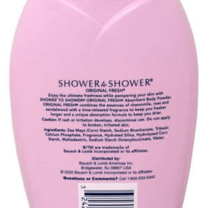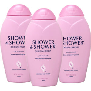 Shower to Shower Original Fresh de 8 onças (pacote com 3) – Mantém você fresco por mais tempo e mantém você mais seco. – Desfrute do máximo de frescor enquanto mima sua pele. – O pó corporal absorvente de chuveiro a chuveiro mantém você fresca por mais tempo e seca.