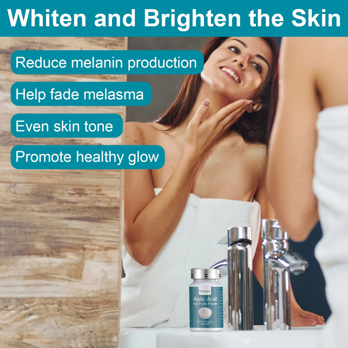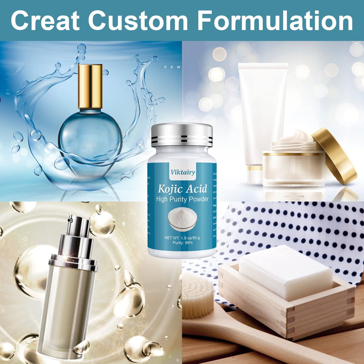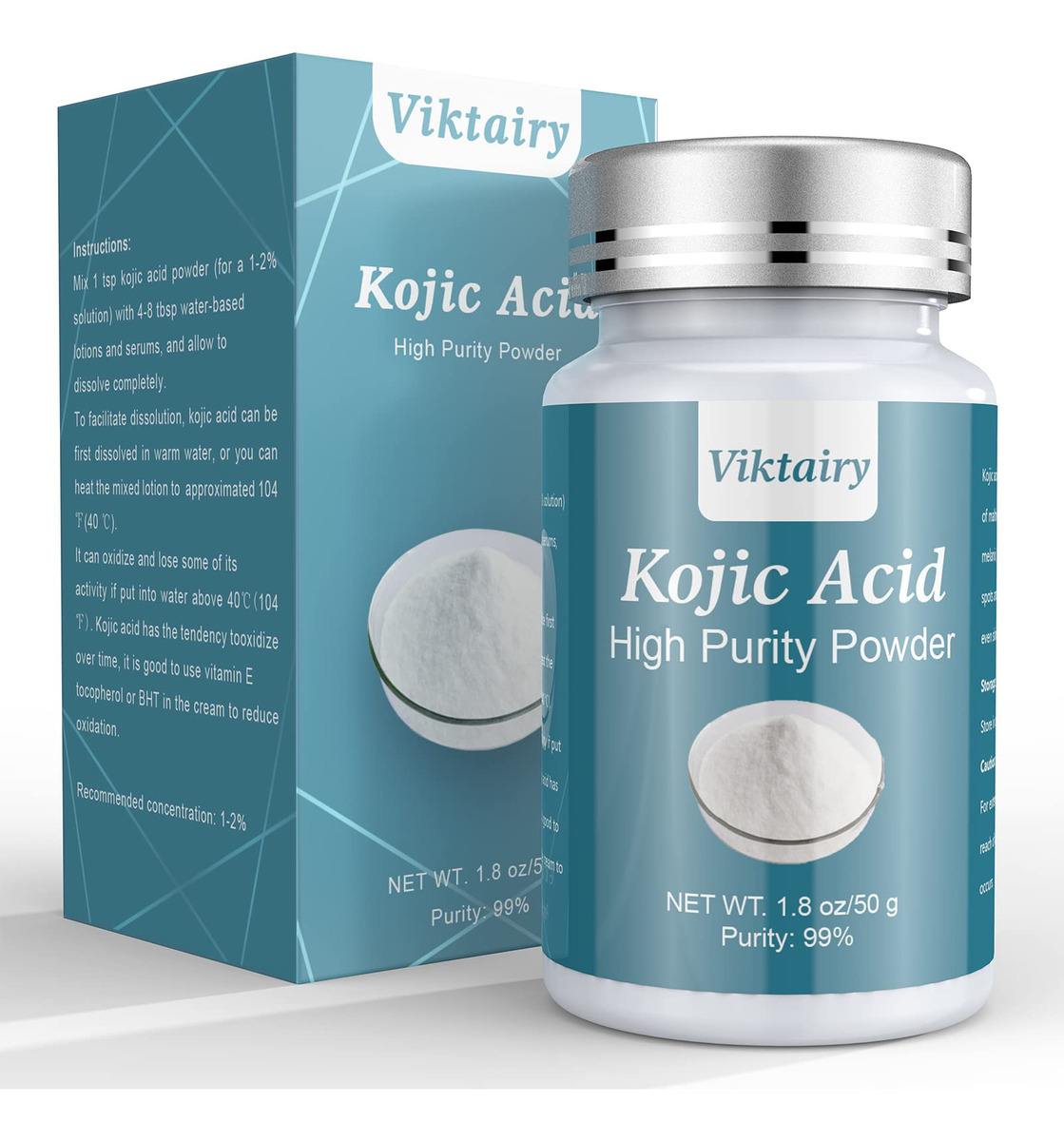 Ingredientes naturais O ácido kójico é um inibidor natural leve da formação de pigmentos, ele atua para impedir a produção de melanina na pele. Os ingredientes naturais reduzem a aparência de manchas escuras, manchas da idade, hiperpigmentação, melasma, sardas, marcas vermelhas, cicatrizes e outros sinais de danos causados pelo sol. Seguro para uso facial e corporal O pó de ácido kójico puro Viktairy funciona para todos os tipos de pele. Pode ajudar a clarear o tom da pele nas axilas, na linha do biquíni, nos cotovelos e na parte interna das coxas com o uso contínuo. Crie uma formulação personalizada O ácido kójico é o principal ingrediente clareador em vários branqueadores. O pó kojic Viktairy para clareamento da pele pode ser adicionado à sua loção, soro ou sabonete para fazer seus próprios sabonetes de ácido kójico, cremes clareadores da pele e soros clareadores da pele. Instruções: Misture 1 colher de chá de ácido kójico em pó (para uma solução de 1-2%) com 4-8 onças de loções e soros à base de água e deixe dissolver completamente. O pó de ácido kójico se dissolve em soluções aquosas (loções e soros à base de água), mas não se dissolve em soluções à base de óleo (como cremes pesados). Para facilitar a dissolução, o ácido kójico pode ser dissolvido primeiro em água morna ou você pode aquecer a loção misturada a aproximadamente 104 graus Fahrenheit. Ele pode oxidar e perder parte de sua atividade se colocado na água acima de 40104. O ácido kójico tem a tendência de se oxidar com o tempo; é bom usar vitamina E tocoferol ou BHT no creme para reduzir a oxidação. Recomendamos que você prepare em pequenos lotes e use dentro de 2 semanas. Teste o adesivo em uma pequena área limpa da pele e aguarde 24 horas antes do uso geral. Interrompa se ocorrer vermelhidão ou irritação. Ingredientes: Ácido kójico 100% Concentração recomendada: 1-2% Armazenamento: Armazenar em local fresco e seco, longe da luz e do calor. Cuidado: Somente para uso externo. Evite o contato com os olhos. Mantenha fora do alcance das crianças. Interrompa se ocorrer vermelhidão ou irritação. – Branqueie e ilumine a pele: o pó de ácido kójico é um inibidor natural leve da formação de pigmentos, ele atua interrompendo a produção de melanina na pele. Oferece outro nível de pele brilhante e brilhante. – Natural e seguro: o ácido kójico foi originalmente encontrado durante o processo de fermentação do arroz de malte para uso na fabricação de saquê. O pó Viktairy Kojic é um produto clareador de pele 100% NATURAL. Seguro para uso facial e corporal. – Diminui cicatrizes e manchas: o pó de ácido kójico atua com o processo de renovação natural da pele para eliminar a pele danificada, espessada e descolorida. Ingredientes naturais poderosos reduzem a aparência de manchas escuras, manchas da idade, hiperpigmentação, melasma, sardas, marcas vermelhas, cicatrizes e outros sinais de danos causados pelo sol. Promova um tom de pele equilibrado e mais uniforme. – Formulações econômicas para cuidados com a pele DIY: O ácido kójico é o principal ingrediente clareador dos clareadores. O pó kojic Viktairy para clarear a pele pode ser adicionado à sua loção, soro ou sabonete para criar uma formulação personalizada por uma fração do custo de produtos de marca. – Como usar: Misture 1 colher de chá de ácido kójico em pó (para uma solução de 1-2%) com loções e soros à base de água de 4-8 onças e deixe que se dissolvam completamente. O pó de ácido kójico puro Viktairy funciona para todos os tipos de pele. – Sem preocupações: você ainda está preocupado em não saber como ativar o pó de ácido kójico? Nosso produto vem com instruções muito detalhadas, e nossos especialistas estão aqui para ajudá-lo se você tiver alguma dúvida.