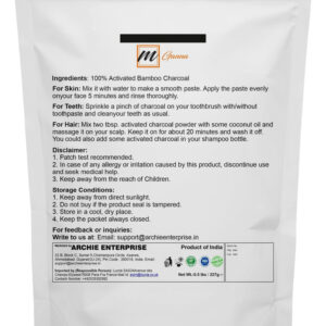 O pó de carvão vegetal de bambu ativado 100% natural MgAnna é um pó finamente moído comumente usado em higiene bucal, cuidados com a pele e aplicações de beleza DIY. Sua textura fina permite que ele se misture bem em máscaras faciais, esfoliantes e sabonetes artesanais. Também é um ingrediente popular em formulações naturais para limpeza de dentes. Este pó versátil é adequado para ser adicionado a receitas caseiras de cuidados com a pele e cosméticos, tornando-o uma escolha útil para projetos de cuidados pessoais e de bricolage. – ESFOLIA A PELE – O carvão vegetal de bambu é notável por ser capaz de esfoliar a pele, o que pode ajudar a eliminar as células mortas da pele que ainda não foram lavadas. Livrar-se das células da pele que já estão mortas pode fazer com que sua pele pareça rejuvenescida e mais jovem. – LIMPADOR DE DENTES – O carvão ativado na pasta de dente pode ajudar a remover manchas superficiais nos dentes. O carvão vegetal é levemente abrasivo e também é capaz de absorver manchas superficiais em algum grau. Basta molhar a escova de dentes, polvilhar uma pitada de carvão com ou sem pasta de dente e escovar como de costume. – LIMPE OS POROS – Quando você aplica carvão ativado no rosto, ele limpa os poros, reduz os cravos e absorve a oleosidade extra. Você pode fazer sua própria máscara facial de carvão em casa com pó de carvão ativado e gel de aloe vera. Basta misturar os 2 ingredientes, aplicar e deixar descansar por cerca de 30 minutos e depois lavar! – DESODORIZE NATURALMENTE – Para desodorizá-lo, basta colocar uma tigela de carvão ativado dentro da geladeira para remover o cheiro indesejado. Ele manterá seu poder de absorção de odores por algumas semanas! O carvão ativado também é ótimo para pequenas áreas fechadas, como carros, armários e sapatos. – DESUMIDIFICADOR NATURAL – O carvão vegetal atua até mesmo como um desumidificador natural. – PROMOVE O CRESCIMENTO DO CABELO – O carvão ativado absorve sujeira, óleo e tem excesso de sebo, o que pode prejudicar a qualidade do cabelo e afetar seu crescimento. Ajuda a limpar todas essas impurezas, remove o sebo e limpa profundamente os poros para deixar o cabelo respirar. Ele desobstrui os poros do couro cabeludo, desintoxicando os folículos. Isso ajuda o cabelo a crescer melhor. – ADICIONA VOLUME AO SEU CABELO – Usar carvão ativado pode reavivar seus cabelos opacos, sem vida e finos e dar a elasticidade e o volume de que precisam! Como limpa profundamente o cabelo e remove todas as impurezas, ele não fica pesado. Você notará um efeito saudável no cabelo imediatamente após a primeira vez que usar carvão ativado no cabelo. – COMO USAR CARVÃO PARA CABELOS – Existem várias maneiras de incorporar carvão ativado em sua rotina de cuidados com o cabelo. A maneira mais fácil é usar produtos induzidos por carvão ativado! Mas você também pode usá-lo como esfoliante capilar. Misture duas colheres de sopa de pó de carvão ativado com um pouco de óleo de coco e massageie no couro cabeludo. Mantenha-o ligado por cerca de 20 minutos e lave-o. Você também pode adicionar um pouco de carvão ativado em seu frasco de xampu e agitar bem. Verifique se você está usando um xampu suave.