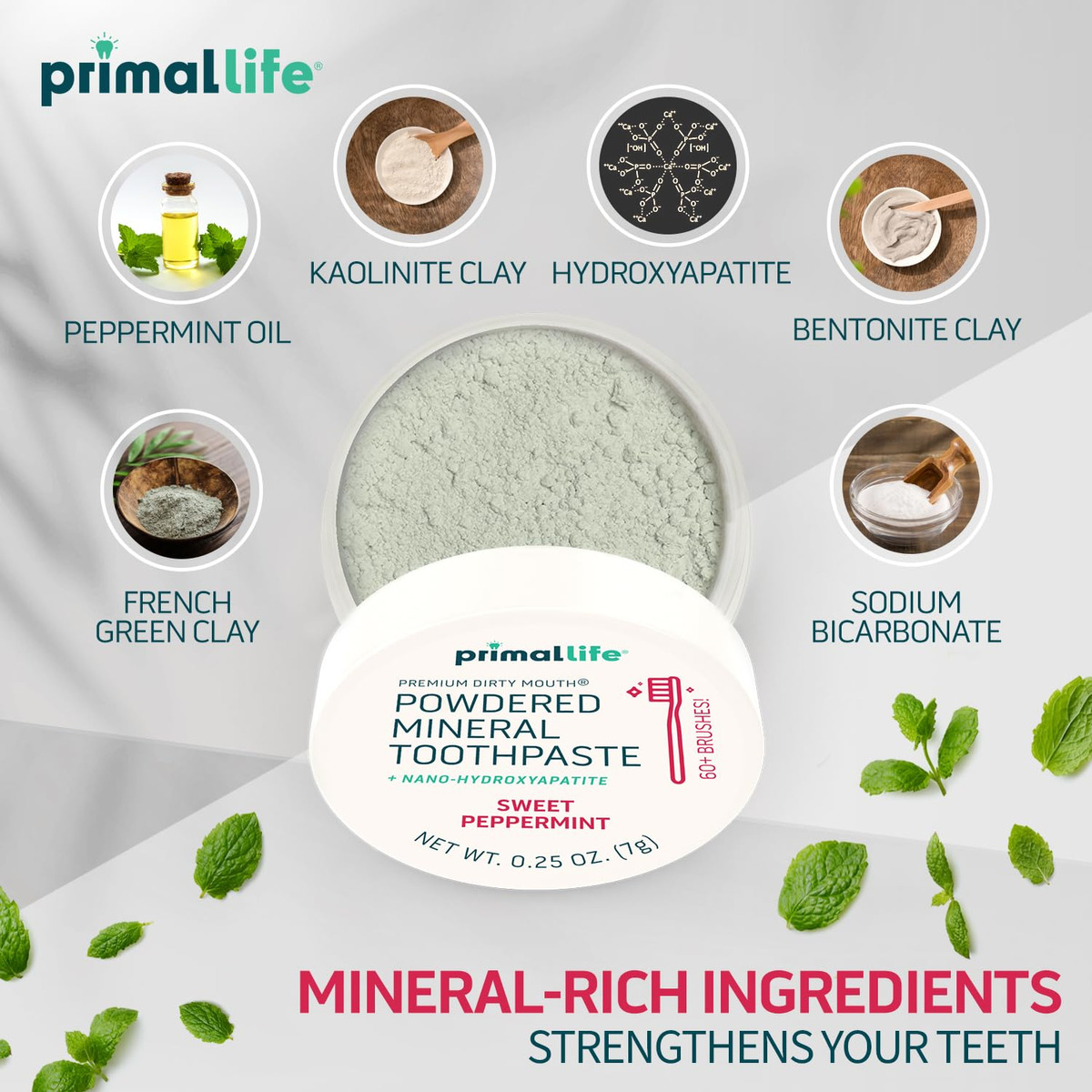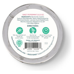 Primal Life Organics — Pó dental sujo para boca, pó para limpeza de dentes, óleos essenciais aromatizados com caulim natural e argila bentonita, bom para mais de 200 escovações, orgânico, vegano (hortelã doce, 0,25 onças) — APOIA A SAÚDE BUCAL GERAL: Nossa saúde bucal é uma parte vital do nosso bem-estar geral e contribui para nosso bem-estar geral. O pó dental Dirty Mouth da Primal Life Organics é feito com ingredientes saudáveis que deixarão sua boca feliz. – AJUDA A PROPORCIONAR UMA LIMPEZA DURADOURA: este incrível pó de dente é vegano, orgânico, sem glúten e é amado por crianças e adultos. Agora você pode escovar os dentes duas vezes ao dia e dar à sua boca uma sensação de frescor e limpeza que ficará com você o dia todo. – Feita com cuidado: esta fórmula de clareamento dental foi feita à mão com cuidado e feita com ingredientes seguros. Fabricamos nossos produtos sem aditivos sintéticos, agentes espumantes, sabores artificiais, flúor ou conservantes. – UM PÓ MÁGICO: Este pó dental é feito com ingredientes poderosos, como argilas de caulim e bentonita ricas em minerais misturadas com bicarbonato de sódio e óleos essenciais com sabor de hortelã. Escovar duas vezes ao dia ajudará sua boca a se sentir fresca e limpa! – NOSSA MISSÃO: Aqui na Primal Life Organics, seu sorriso é nossa missão. Acreditamos que uma boa saúde inclui priorizar seus cuidados bucais usando pó e cremes dentais com ingredientes orgânicos de alta qualidade que incentivam dentes limpos e saudáveis!