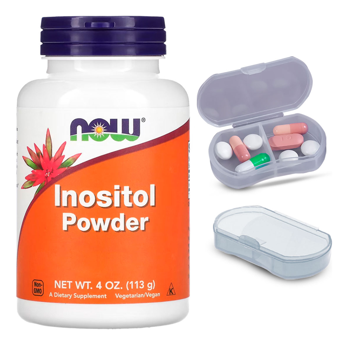Kit Pó de inositol Now Foods Mio-inositol 113g + Porta Cápsulas Foco no Suporte Nutricional: O Pó de Inositol da Now Foods, especificamente o Mio-Inositol, é formulado para oferecer um suporte nutricional focado. Com 113g por embalagem, é ideal para quem deseja um complemento específico para sua dieta. Versatilidade do Formato em Pó: Este suplemento em pó oferece uma maneira flexível e personalizável de consumo. Pode ser facilmente misturado em bebidas ou alimentos, adaptando-se perfeitamente à sua rotina alimentar e preferências pessoais. Produto Importado com Disponibilidade Imediata: Importado pela Now Foods, este produto assegura a mais alta qualidade e pureza. Está disponível para pronta entrega, permitindo que você inicie seu uso sem atrasos. Porta Cápsulas com Duas Repartições: O kit também inclui um porta-cápsulas prático, dividido em duas seções internas. Isso permite uma organização eficaz e separada de diferentes tipos de cápsulas ou pílulas. Composição Pura e Concentrada: Cada porção deste pó contém Mio-Inositol puro, sem aditivos desnecessários, garantindo uma composição eficaz e concentrada. A formulação é cuidadosamente desenvolvida para assegurar a máxima qualidade do nutriente. VALIDADE LONGA