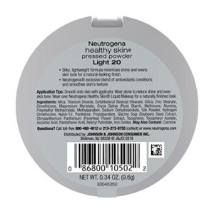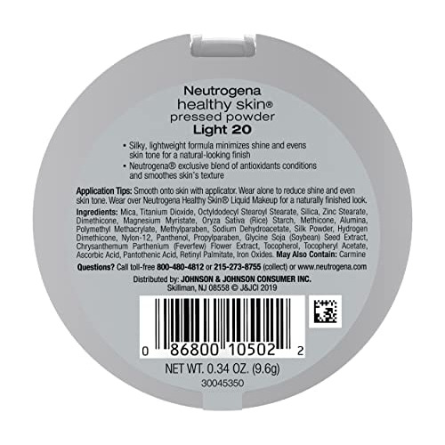 Descrição do produto Obtenha uma cobertura perfeita e de aparência natural com o Neutrogena Healthy Skin Pressed Makeup Powder Compact. Este pó prensado leve, sedoso e aveludado minimiza o brilho e uniformiza e condiciona o tom da pele para um acabamento mate, impecável e com aparência natural. A fórmula contém difusores de luz, que ajudam a suavizar a aparência das linhas finas e minimizar as imperfeições. A fórmula exclusiva dessa maquiagem em pó contém antioxidantes, incluindo pró-vitamina B5 e vitaminas C e E para condicionar a pele, minimizar a aparência de manchas e suavizar a textura da pele. Este pó de maquiagem compacto prensado deixa a pele com uma aparência fresca o dia todo. Do fabricante, o pó prensado Healthy Skin oferece uma cobertura perfeita e de aparência natural, ao mesmo tempo que suaviza e condiciona a pele. Este pó macio, leve e aveludado oferece um lindo acabamento fosco sem uma aparência pulverulenta. A fórmula desenvolvida por dermatologistas contém provitamina B5 e vitaminas C e E para ajudar a suavizar e condicionar a pele. Os difusores de luz suavizam a aparência das linhas finas e minimizam as imperfeições. A pele fica fresca o dia todo.