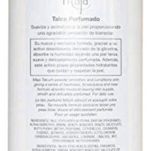 Pó de talco perfumado. Aplicação no estilo coqueteleira com tampa interna perfurada.