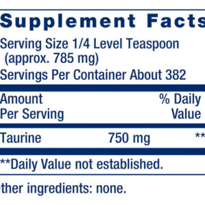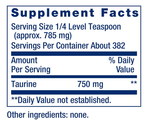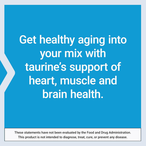 • Apoia a saúde do coração e o envelhecimento saudável ' A taurina apoia a saúde do coração e ajuda a saúde circulatória. Estudos sugerem que a taurina está correlacionada com o envelhecimento saudável.