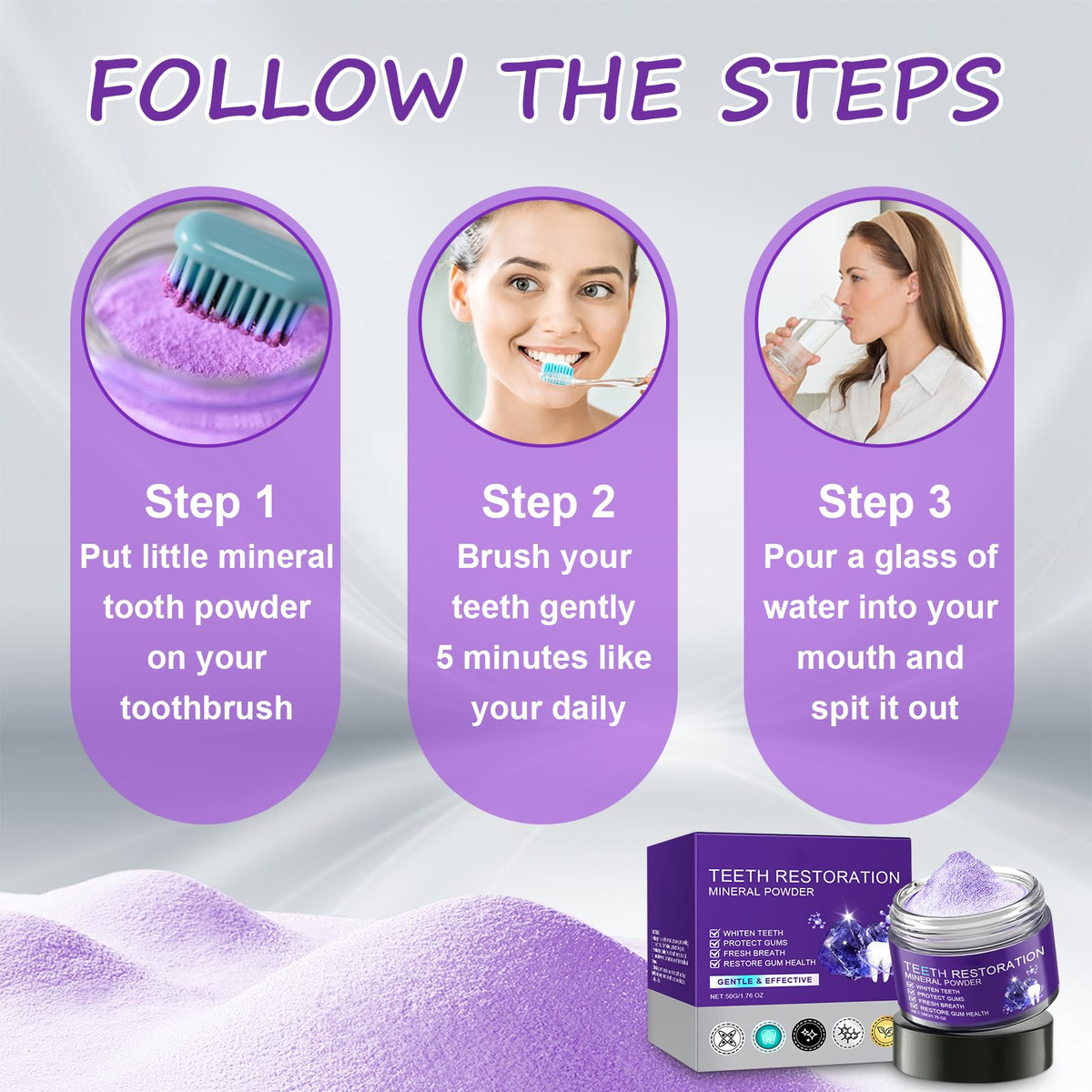 Pó mineral 2025 New Teeth Restoration com embalagem roxa, muito adequado para meninas ou mulheres. O pó mineral para dentes contém minerais ricos, 100% naturais e com sabor fresco de menta para manter a boca acordada. O efeito de restaurar a gengiva e fortalecer os dentes é mais óbvio. – Novo pó de dente natural: ingredientes suaves e não irritantes para manter o fortalecimento dos dentes e restaurar a gengiva – Mineral rico: os ingredientes minerais do pó dental incluem vitamina C, extrato de folha de hortelã, extrato de semente de uva, coenzima Q10 e caulim – Sensação refrescante: este creme dental mineral em pó contém vitamina C, extrato de folha de hortelã, extrato de semente de uva, coenzima Q10 e caulim extrato de folha de hortelã para manter a boca fresca e fresca – Embalagem atualizada: cor roxa lavanda caixa medindo 1,89 x 1,89 x 1,61 polegadas, produto medindo 2,01 x 2,01 x 1,73 polegadas, total de 50 g de pó mineral para limpeza de dentes – Fácil de usar: você pode mergulhar o dedo ou a escova de dentes em um pouco de pó mineral branqueador de dentes, escovar os dentes diariamente