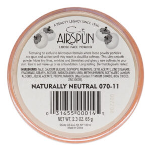 Pó facial Coty AIRSPUN, naturalmente neutro, 2,3 onças, pó facial solto de tom natural, para fixar a maquiagem ou a base, leve e duradouro, pacote com 1 — Acabamento impecável — Suavidade semelhante à nuvem — Acabamento perfeito para fixar a maquiagem