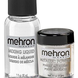 O Pó Metálico e O Mixing Liquid da Mehron é um conjunto com possibilidades de design ilimitados. Esta maquiagem de pó metálico ultrafina pode criar designs e efeitos dramáticos de maquiagem. A maquiagem macia de pó metálico é finamente trabalhada, uniformemente misturada e formulada para adicionar acentos dinâmicos e brilhantes a qualquer look de maquiagem. Ouro, Prata, Bronze ou Cobre Pó Metálico pode ser usado sozinho para uma cor pura sutil ou misturado com o nosso incluído 1 oz. Misturando Líquido para criar a cor intensa de metais reais. Esta maquiagem de pó metálico ultrafina pode criar designs e efeitos dramáticos de maquiagem. A maquiagem macia de pó metálico é finamente trabalhada, uniformemente misturada e formulada para adicionar acentos dinâmicos e brilhantes a qualquer look de maquiagem. Como usar: Despeje uma pequena quantidade em uma superfície seca limpa, aplique com escova, esponja ou dedo. Combine com o líquido de mistura incluído para formar um líquido vibrante resistente à água que seca completamente. Mergulhe e aplique para o efeito desejado. The Mehron Story: Mehron Makeup é líder em maquiagem profissional há mais de 90 anos. Nossos produtos são usados na passarela, palco e sets de cinema ao redor do mundo. A Mehron Makeup orgulha-se de oferecer produtos profissionais distintos para cada um dos nossos três principais segmentos de maquiagem: beleza, body art e performance. Orgulhosamente fabricado nos EUA desde 1927.