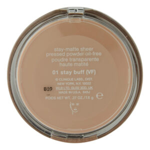 Pó prensado transparente Clinique Stay-Matte para combinação seca a oleosa, nº 01 Stay Buff (vf), 0,27 onças – Um pó prensado sem óleo e que absorve brilho – A textura ultrafina desse pó prensado dá à pele uma aparência fosca perfeita – Oferece cobertura pura a moderada – O país de origem são os Estados Unidos
