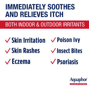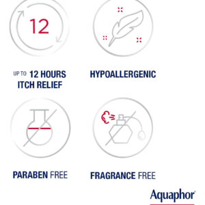 A pomada para alívio da coceira Aquaphor é formulada exclusivamente com os ingredientes calmantes do Aquaphor mais a pomada anti-coceira de hidrocortisona de 1% de força máxima. Esta pomada para alívio da coceira acalma e alivia imediatamente a coceira e a irritação de causas internas e externas, incluindo irritação da pele, picadas de insetos, psoríase, erupções cutâneas, eczema e hera venenosa. Clinicamente comprovada por proporcionar até 12 horas de alívio significativo da coceira, esta pomada é suave para a pele irritada e inflamada, oferecendo o máximo alívio da força. A pomada para alívio da coceira Aquaphor é uma ótima alternativa para um creme anti-coceira e é ideal para alívio da coceira por picada de mosquito, alívio da coceira por picada de inseto ou como tratamento de psoríase, tratamento de eczema ou tratamento de hera venenosa. A pomada anti-coceira de 1% de hidrocortisona é livre de fragrâncias e parabenos e é hipoalergênica. Aplique a pomada Aquaphor Itch Relief na área afetada não mais do que 3 a 4 vezes ao dia. Este produto é seguro para adultos e crianças com mais de 2 anos. Cada um dos ingredientes dos produtos para cuidados com a pele Aquaphor é testado e aprovado quanto à sua qualidade e segurança. Aquaphor é uma marca recomendada por dermatologistas e pediatras.