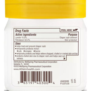 Uso versátil: Embora seja usada principalmente para assaduras, a pomada original A+D para assaduras também pode ser usada para outras irritações cutâneas menores, como irritações, pequenos cortes e arranhões.