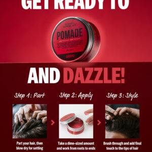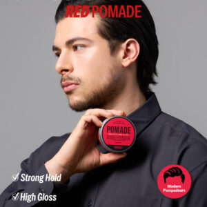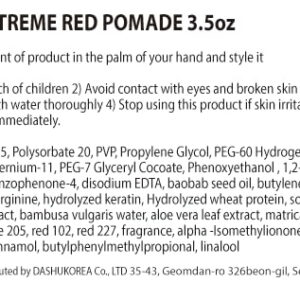 Pomada DASHU Classic Extreme Red de 3,5 onças — Fixação forte e alto brilho para pentear — Com forte fixação e alto brilho, oferece uma variedade de maneiras de modelar seu cabelo — Com material à base de água, você pode facilmente lavar o cabelo sem graxa — Com ingredientes de baobá, mantém o cabelo hidratado e aumenta a elasticidade para otimizar o penteado