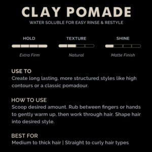 Pomada de argila ZEUS para homens, acabamento fosco, solúvel em água e de fixação extra firme, fabricada nos EUA (4 onças) – POMADA DE ARGILA PARA MODELAR O CABELO: fabricada com orgulho nos EUA, nossa pomada de argila ZEUS de 4 onças é a melhor opção para obter uma ampla variedade de estilos de cabelo, desde uma aparência fácil e bagunçada até uma aparência definida e estruturada. – Fixação extra firme: a pomada extra firme oferece uma aparência mais firme e desarrumada uma fixação forte que dura o dia todo e sua fórmula solúvel em água facilita o enxágue no final do dia. – APARÊNCIA NATURAL: ao contrário das pomadas de alto brilho, seu acabamento fosco de baixo brilho adicionará textura instantaneamente, mantendo sua aparência natural. – AROMA SUTIL: A pomada de argila é infundida com nosso aroma leve e refrescante de verbena e limão de inspiração californiana. – Sem parabenos | Sem sulfatos | Sem crueldade | Feito nos EUA