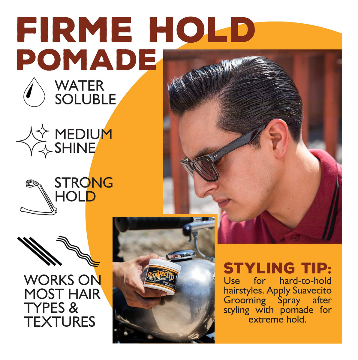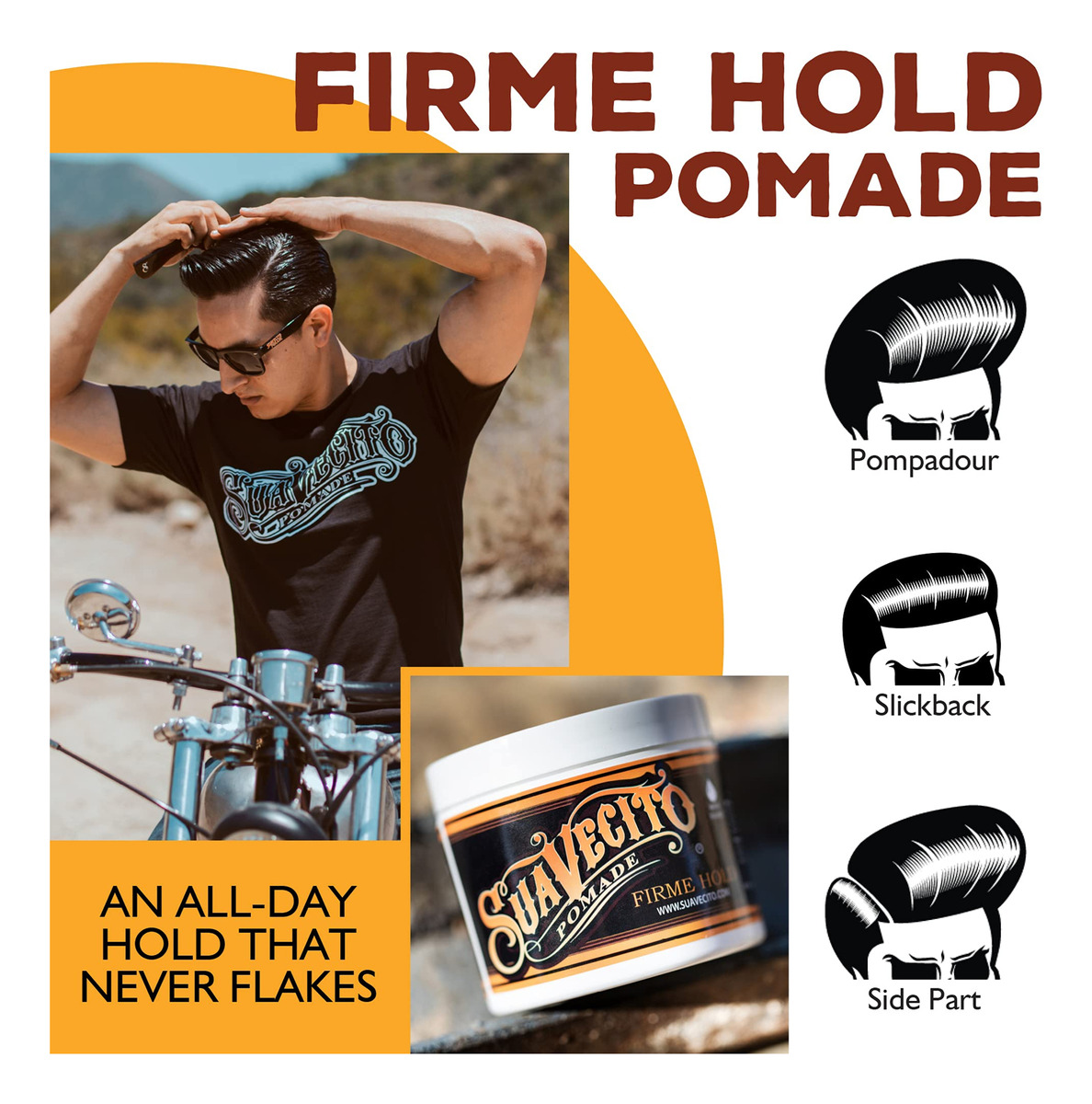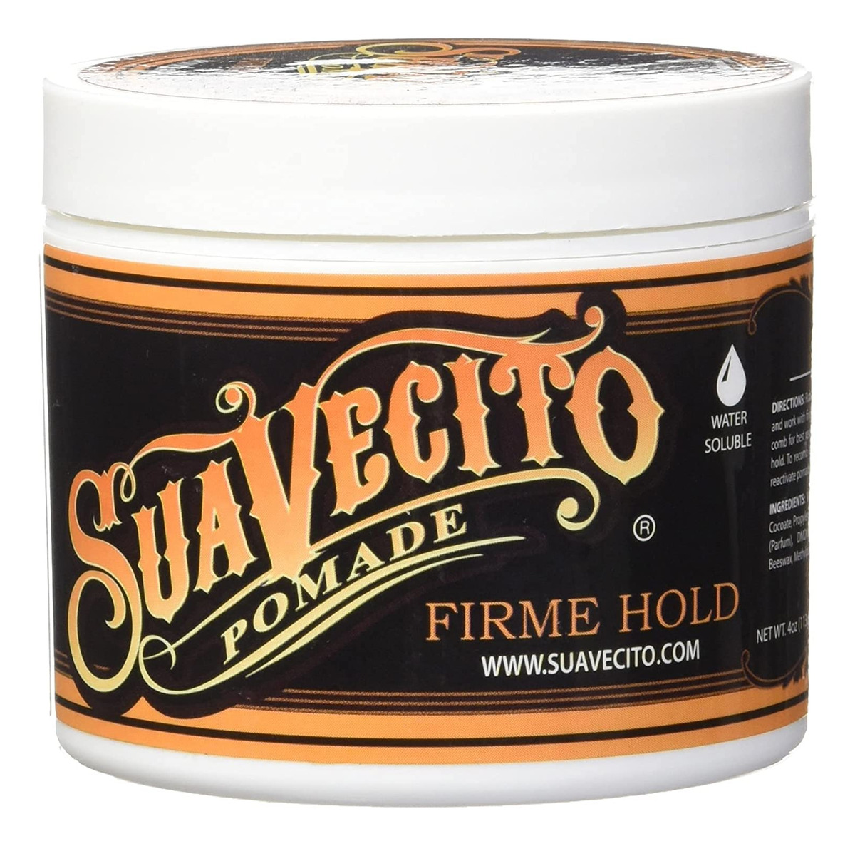 Suavecito Pomade Firme (Strong) Hold tem um aroma único e é solúvel em água. Este produto é semelhante ao Suavecito Pomade original, mas com mais força. A firmeza (forte) segura como cera, mas é lavada sem esforço. A consistência cremosa permite que ele se penteie facilmente, ao mesmo tempo que fornece uma forte aderência para máxima flexibilidade de modelagem. O brilho moderado e o aroma unissex, leve e fresco são perfeitos para homens e mulheres, tornando-o a adição perfeita a qualquer kit de higiene. Não só o barbeiro e os estilistas confiam nele, mas as pessoas cuja cultura inspirou o produto, motociclistas, tatuadores e amantes de carros personalizados também o adoram. Feito com orgulho nos EUA. 4 onças. – BRILHO MODERADO. Esta pomada de brilho moderado tem uma consistência cremosa e proporciona um brilho vibrante e saudável ao cabelo. Aplique nos cabelos úmidos para obter mais brilho e aplique nos cabelos secos para obter menos brilho. – SOLÚVEL EM ÁGUA. Esta pomada é lavada facilmente com apenas água e não são necessários xampus ou sabonetes especiais. Não deixa o cabelo oleoso ou manchado após a lavagem. Deixa o cabelo saudável e limpo após um enxágue rápido. Sem produtos químicos agressivos para ressecar o cabelo ou danificar o couro cabeludo. – PENTEIE COM FACILIDADE. Estilize seu cabelo sem frustração. A pomada Suavecito Firme (Strong) segura com facilidade e oferece uma aderência robusta para máxima flexibilidade de modelagem e menos bagunça. – Fixação forte. Esta é uma ótima pomada para penteados como: pompadours, costas lisas e partes laterais. Qualquer estilo de cabelo pode ser conseguido com esta pomada! Se você tem mais facilidade de manusear o cabelo, confira nossa pomada Original Hold de fixação média. – APROVADA PELA COMUNIDADE. Nascido e criado em Santa Ana, Califórnia, o Suavecito Pomade se inspira na comunidade em que prosperou. A Suavecito se orgulha de sua comunidade e qualidade. Feito 100% nos Estados Unidos.