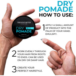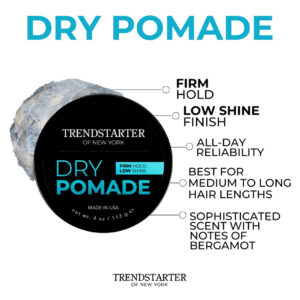 TRENDSTARTER — POMADA SECA (4 onças) (pacote com 2) — Fixação firme — Baixo brilho — Pomada tipo gel à base de água — Produtos premium para pentear o dia todo — A primeira desse tipo — A pomada seca TrendStarters é uma fórmula revolucionária e exclusiva que combina gel de cabelo atemporal com pomada moderna. Nossa pomada seca proporcionará uma fixação firme, tipo gel, sem crocância. – Fixação firme – A pomada seca TrendStarters oferece uma fixação firme durante todo o dia, ao mesmo tempo em que adiciona textura e definição ao penteado. – BAIXO BRILHO – Adicione um acabamento natural de baixo brilho ao cabelo com nossa pomada seca. – INGREDIENTES PREMIUM – A TRENDSTARTER usa ingredientes da melhor qualidade para manter seu cabelo saudável e estilizado. A pomada seca TrendStarters contém muitos nutrientes, incluindo biotina e aloe vera. Nossa fórmula exclusiva fortalece, condiciona e hidrata todos os tipos de cabelo. – Feito nos EUA