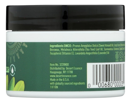 Pomada para pele com óleo de melaleuca Desert Essence 1 onça Pacote com 2 Óleos essenciais de jojoba e lavanda Vitamina E Extrato de amêndoa doce Hidratante para pele seca, irritações cutâneas e cutículas