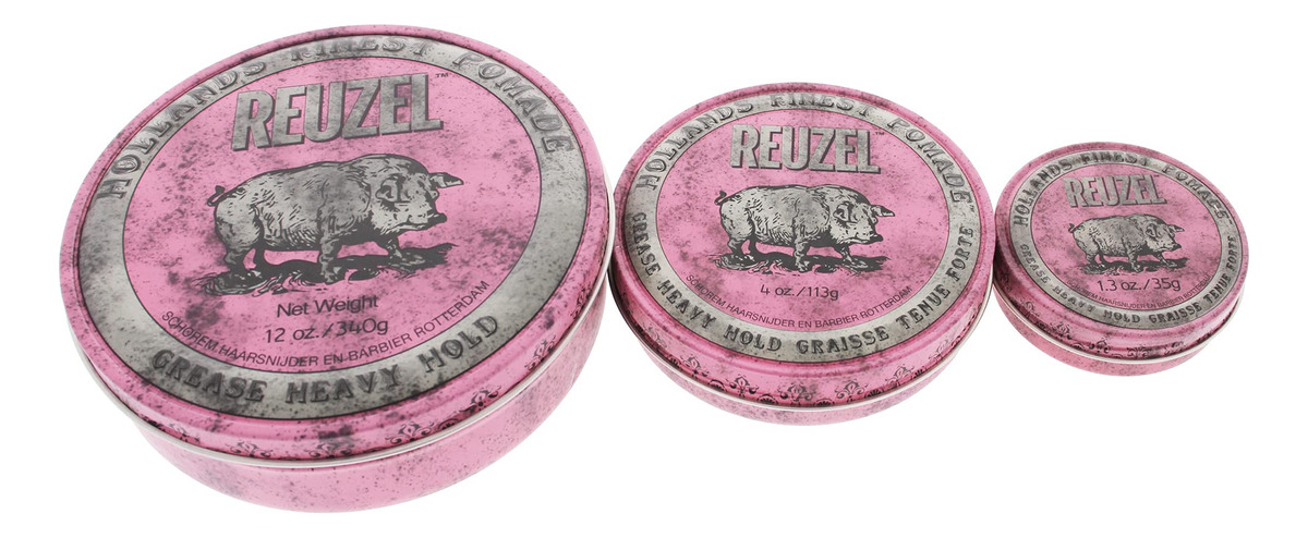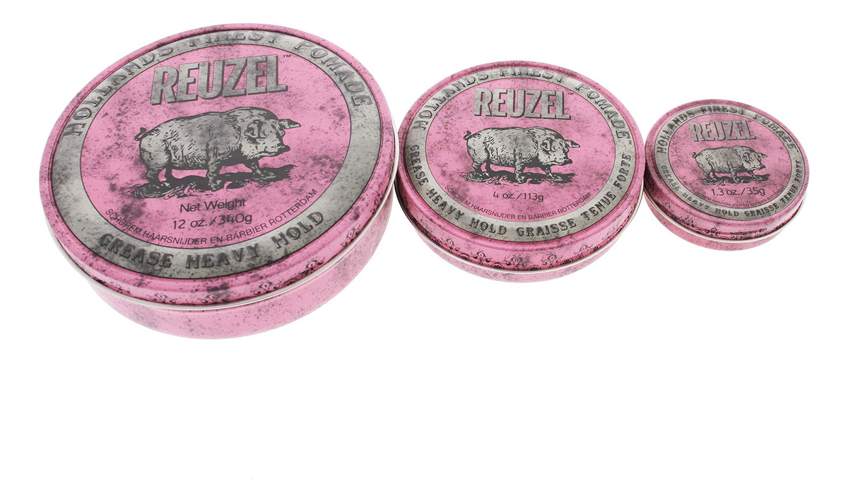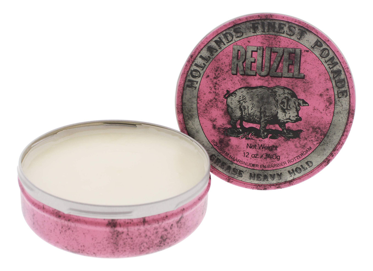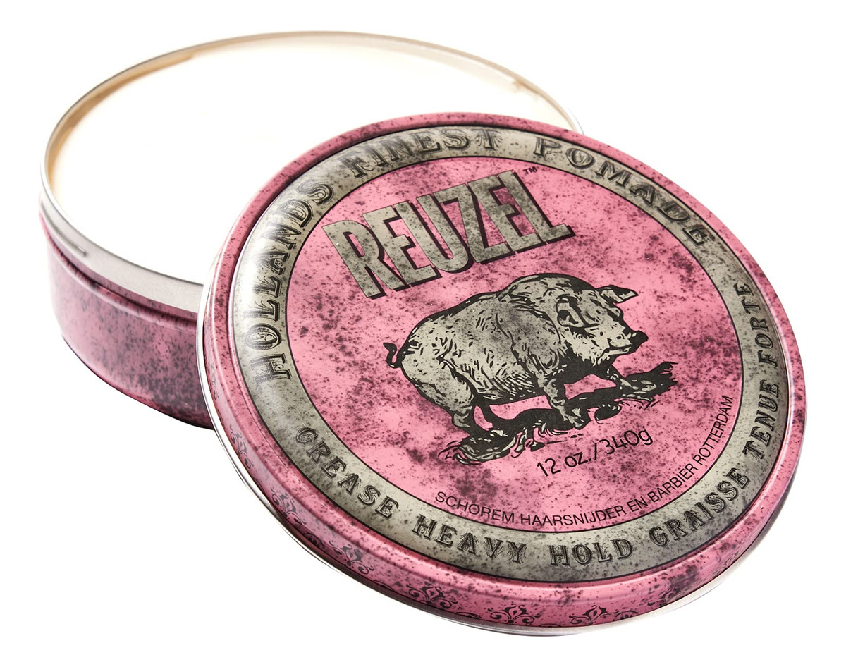 Graxa de pomada rosa REUZEL, fixação pesada, 12 onças — Grease Heavy Hold Pomade Hog