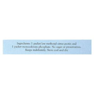 Pomona’s é pectina cítrica pura sem glicose ou conservantes. O poder de geleia é ativado pelo cálcio (incluído), não pelo teor de açúcar.