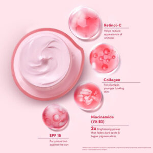 Contém retinol-C, que ajuda a reduzir os sinais de envelhecimento e melhora o brilho natural da pele.