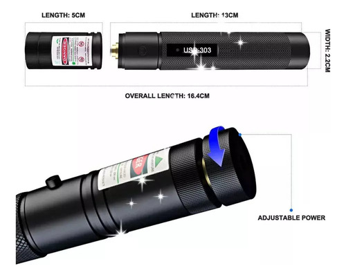 3,7 V DC; alcance: 2000 metros (maior distância visível a olho nu à noite)