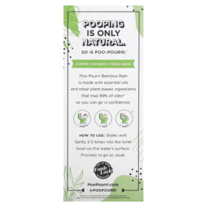 Poo ~ Pourri Bamboo Rain é feito com óleos essenciais e outros ingredientes à base de plantas que prendem 99% do odor, para que você possa ir com confiança.