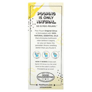 Cítricos Original Poo-Pourri é formulado com óleos essenciais 100% naturais que eliminam o odor do banheiro antes mesmo de começar. Assim, você pode deixar o trono com um cheiro melhor do que quando o encontrou.