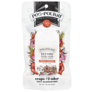 O Hibisco Tropical Poo~Pourri é feito com Óleos Essenciais e outros ingredientes à base de plantas que retêm odores nº 2 para que você possa ir tranquilo, com 100% de garantia.