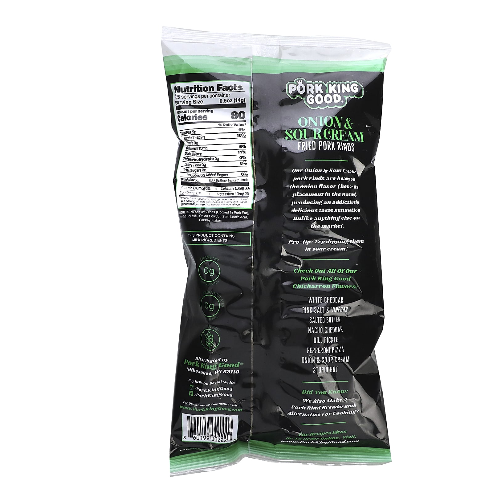 Pork King Good Chicharrones com Sabor Cebola e Creme Azedo 495 g (175 oz) – Pork King Good Alimentos Petiscos e lanches Snacks crocantes Cascas de porco.